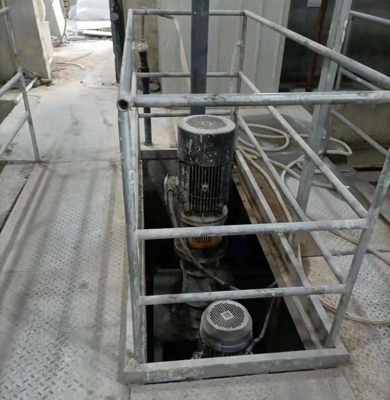Un bassin de transition pour la boue se trouve à côté du réservoir de stockage de la boue, avec deux rôles : l'un est de pomper la boue vers la zone de dosage, l'autre est de faire la liaison avec chaque réservoir individuel.
