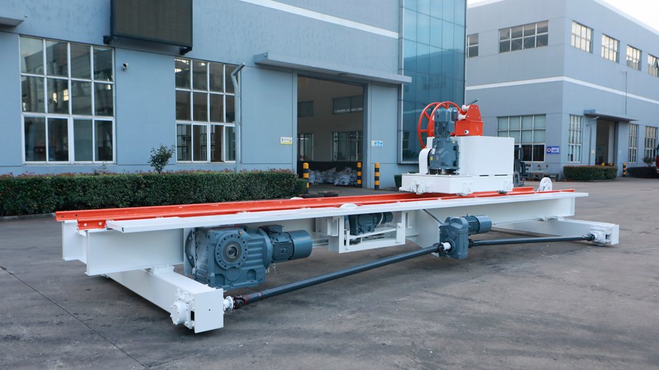 Le chariot sur rails pour la poussée avant/après autoclavage est situé dans la section autoclave de la ligne de production de béton cellulaire autoclavé. Il se compose d'une station de travail, d'une roue de friction/accrochage, d'un mécanisme de poussée, d'une roue de marche et d'un dispositif de positionnement. Le transporteur motorisé peut s'arrêter, se positionner et s'aligner sur les rails avec précision après un mouvement transversal rapide. Lorsqu'il est chargé, le chariot peut convertir la fréquence et se déplacer lentement. Cependant, le chariot sur rails vide peut également se déplacer rapidement en convertissant la fréquence lorsqu'il revient.