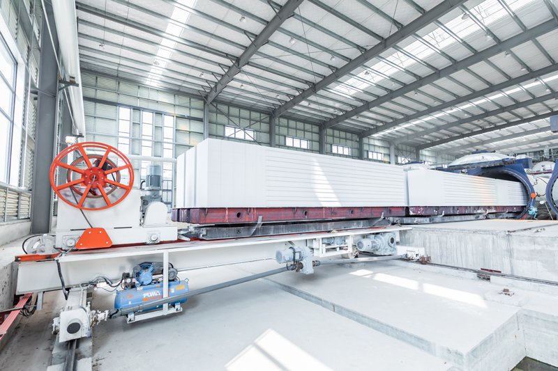 La partie motrice du chariot porte le gâteau autoclavé, et relie automatiquement le chariot d'autoclavage, puis retire le gâteau de l'autoclave. Le premier chariot pour autoclave se détache de la partie motrice, puis est transféré par le chariot vers les rails de retour et la zone de déchargement.