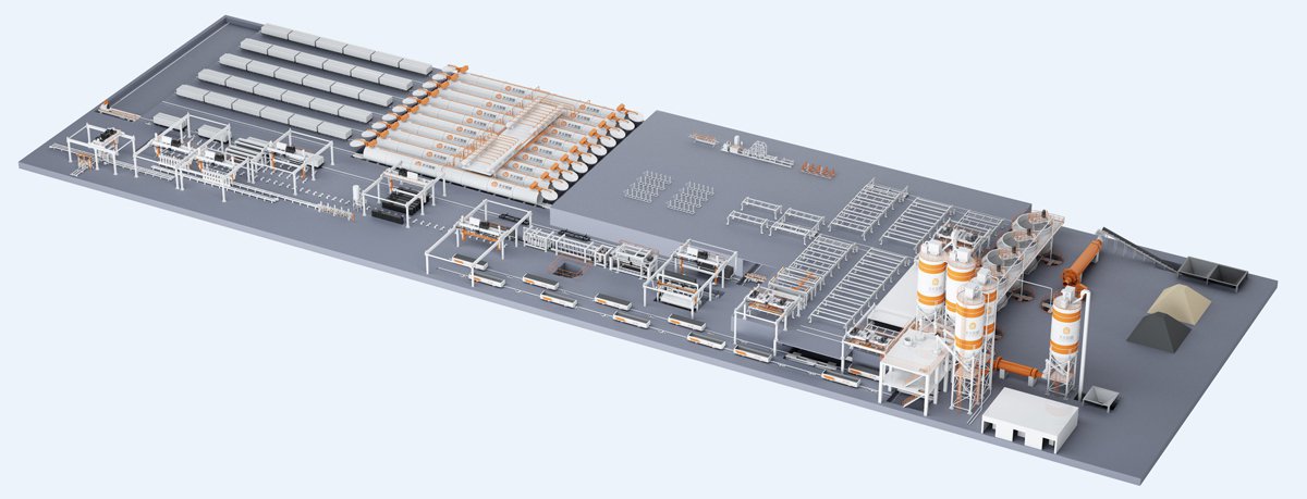 TEEYER bénéficie de plus de 30 ans d'expérience dans la conception et fabrication d'équipements de production de béton cellulaire autoclavé de haute performance. Notre ligne de production de blocs/panneaux en béton cellulaire autoclavé intègre les plus récents algorithmes de contrôle, permettant ainsi de superviser le dosage des matériaux, la pré-cuisson et de maîtriser les processus de production ultérieurs. La ligne de production entière est composée de plusieurs sections, y compris la section de préparation des matériaux, la section de dosage et coulage, la section de pré-séchage, la section de découpe, la section d'autoclavage et la section d'emballage.